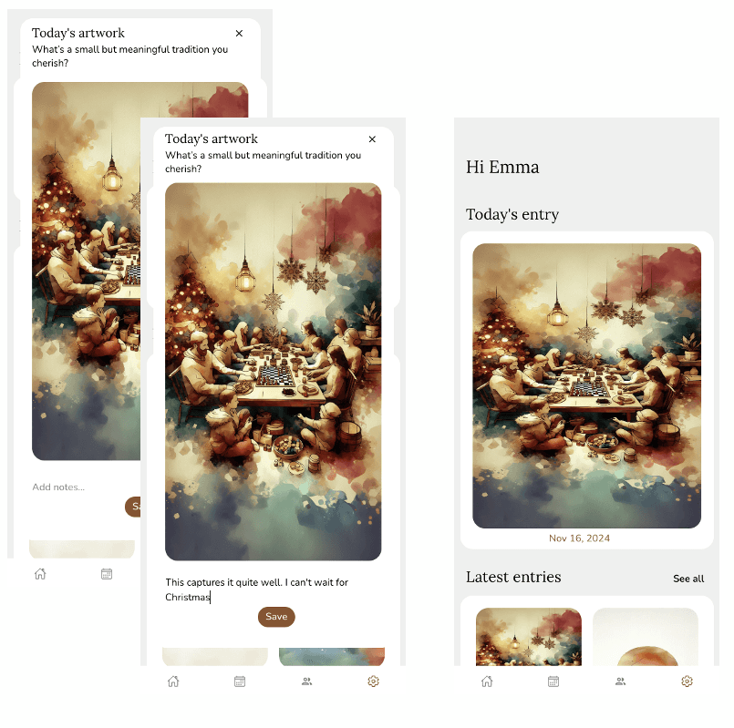 2) Watch your unique artwork come to life, write down your insights, and save it for later