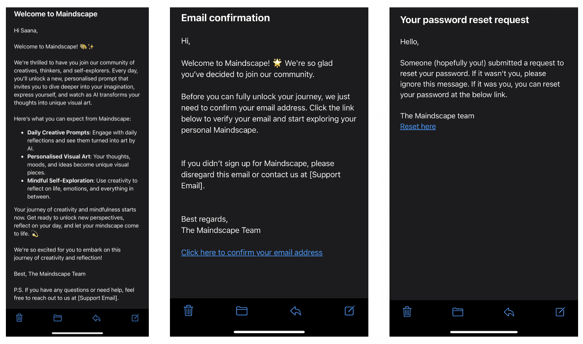 Maindscape is a mobile app that provides users with daily generative art based on prompts. Users input their thoughts, ideas, or emotions for the day, and the app generates a unique piece of art inspired by their input, creating a daily art journal over time: