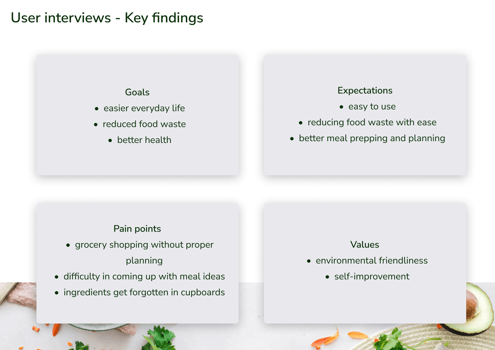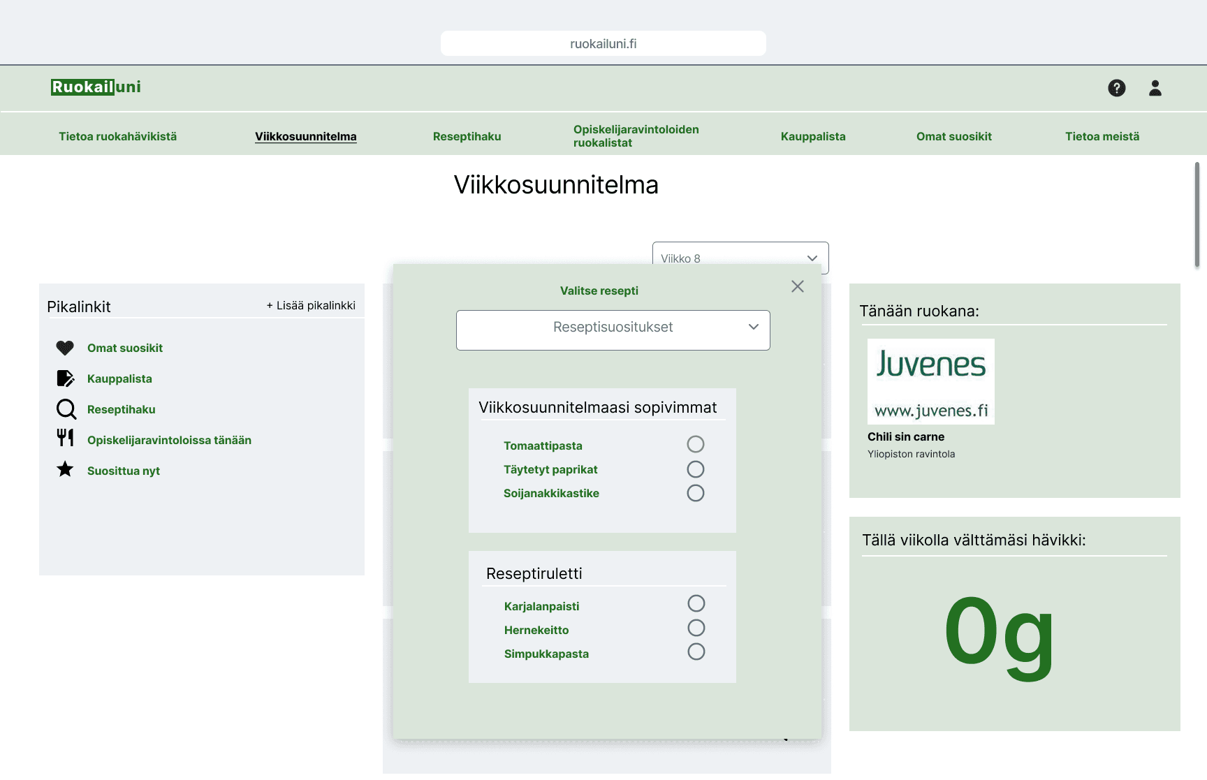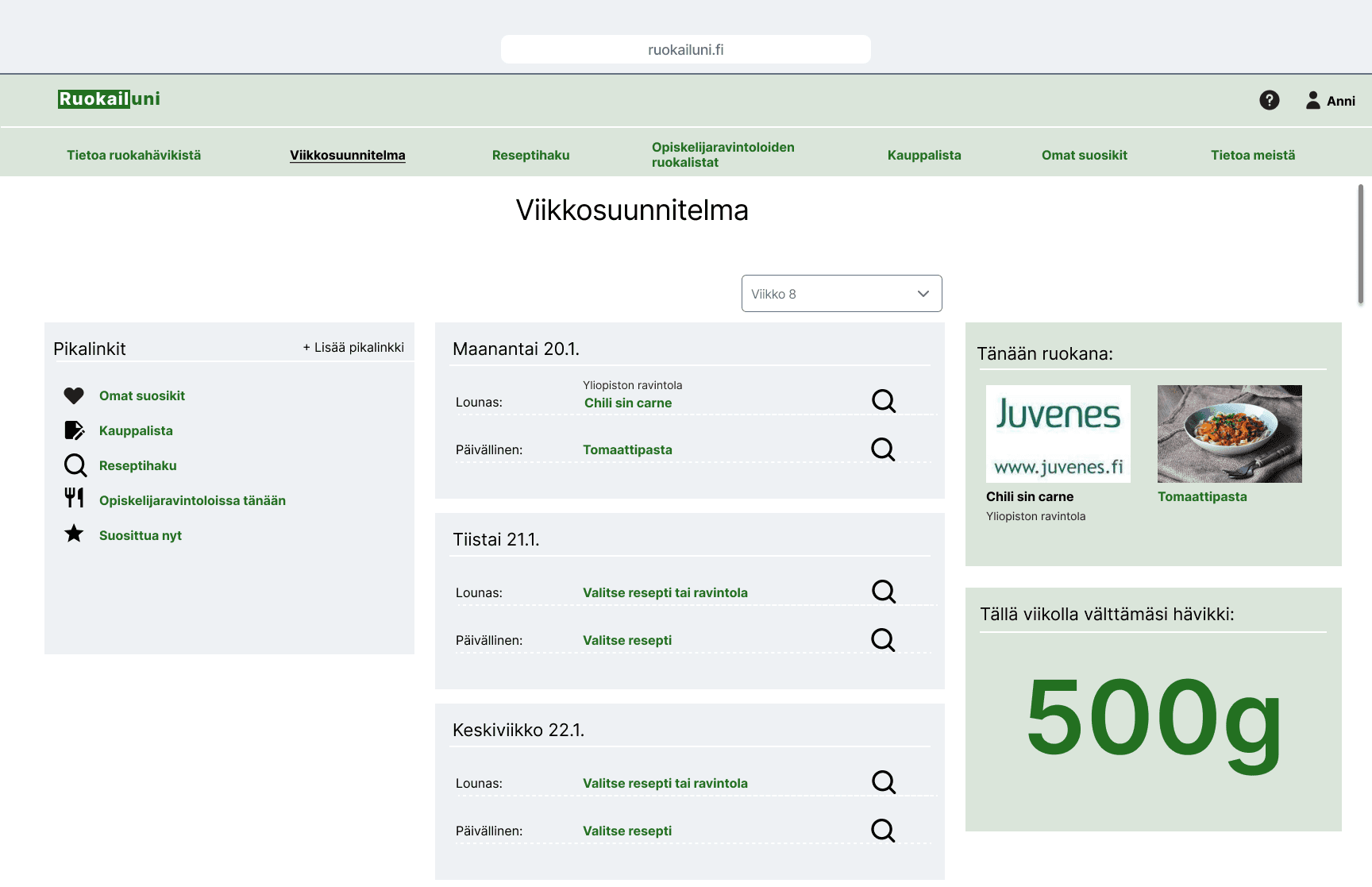 The objective of this university course project was to come up with a new concept that would help cut food waste among university students. The service should not be too time-consuming or difficult to use in the busy student life.