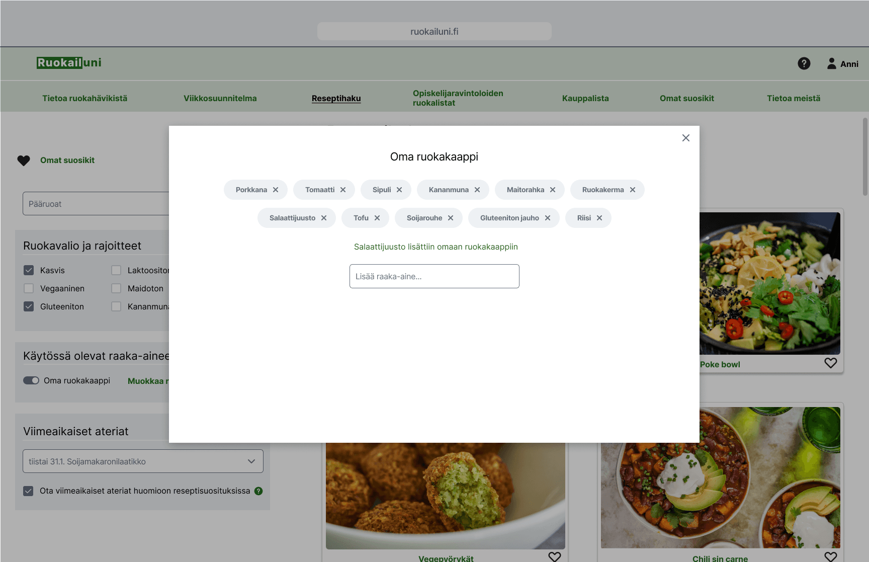 The service also integrates university restaurant menus, allowing users to plan meals both at home and on campus. By combining these options in one place, the service supports more organised, flexible, and forward-thinking meal planning.