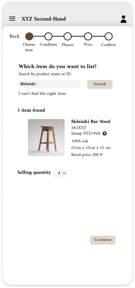 The objective of this recruitment assignment was to create a user interface for a new second-hand web store that is run by a company called XYZ. It should be demonstrated how a seller can list a product using a mobile device. The design should be engaging, and using the web store should be simple. Also, the site should be distinctive from XYZ’s already existing web store.