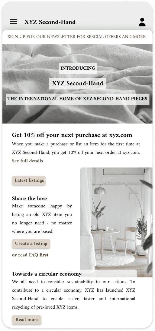 Engagement can be increased through incentives such as discounts on future XYZ purchases after a user’s first listing or purchase. This encourages continued use and drives traffic to the main store. Newsletter sign-ups (e.g. for discounts or new listing alerts) also help retain users.